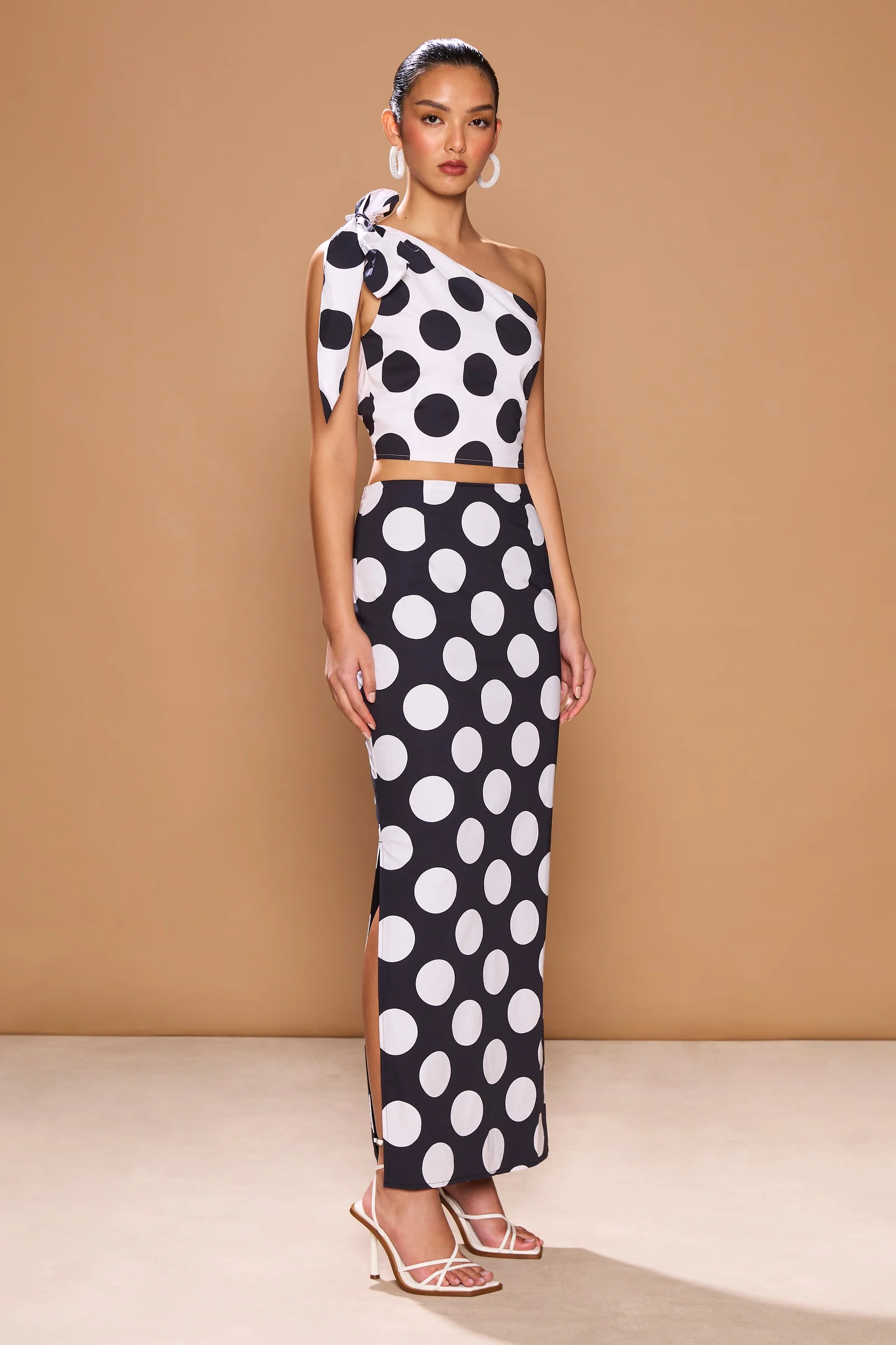 The Milano Top is a statement one-shoulder design, constructed with layers of voluminous, ruffled fabric that wrap diagonally across the chest and over one shoulder. Its sculptural shape creates a bold, high-fashion look while the cropped cut adds a touch of modern edge and femininity.
