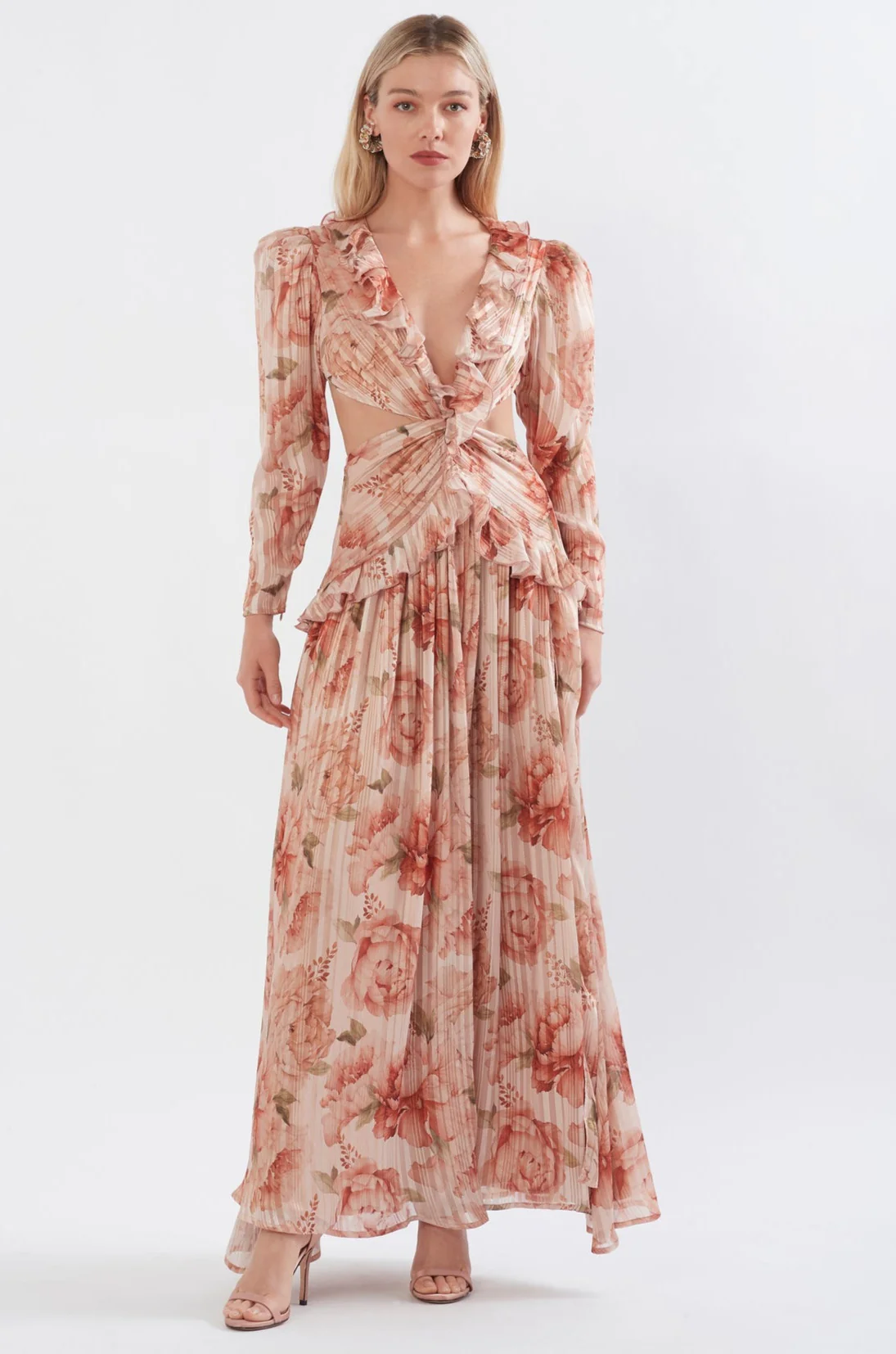 RUFFLE CUTOUT MAXI IN SPICED PEONIES